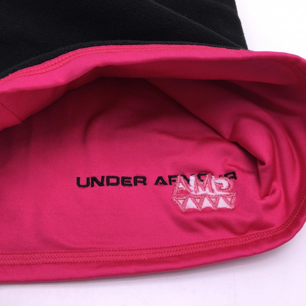 【超美品】アンダーアーマー ネックウォーマー 黒×ピンク ロゴ刺しゅう ドローコード 表起毛 ゴルフウェア UNDER ARMOUR