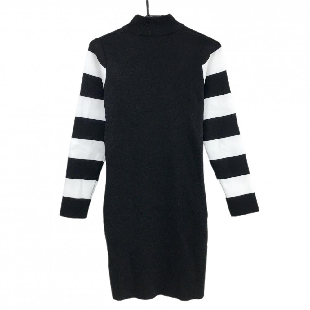 【超美品】キスオンザグリーン ハイネックニットワンピース 黒×白 袖ボーダー レディース 3(L) ゴルフウェア kiss on the green