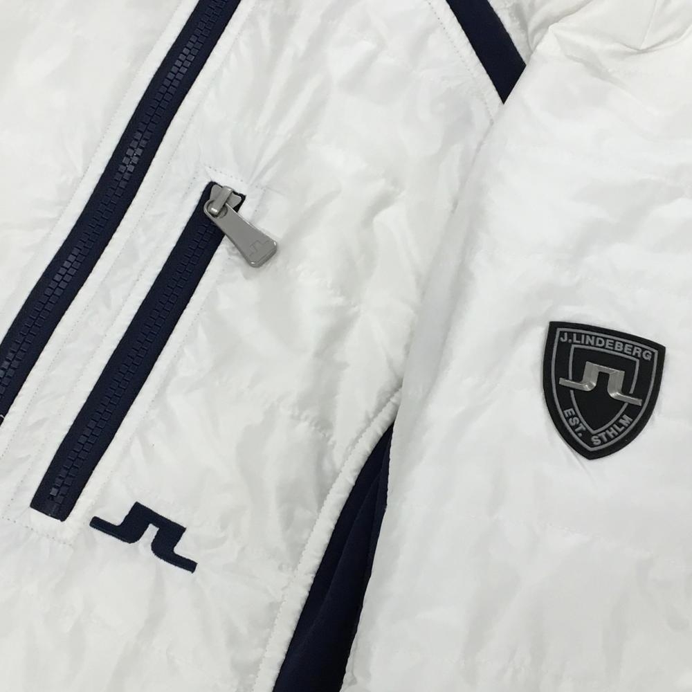 ジェイリンドバーグ 切替中綿ジャケット 白×ネイビー 袖ワッペン レディース M ゴルフウェア J.LINDEBERG