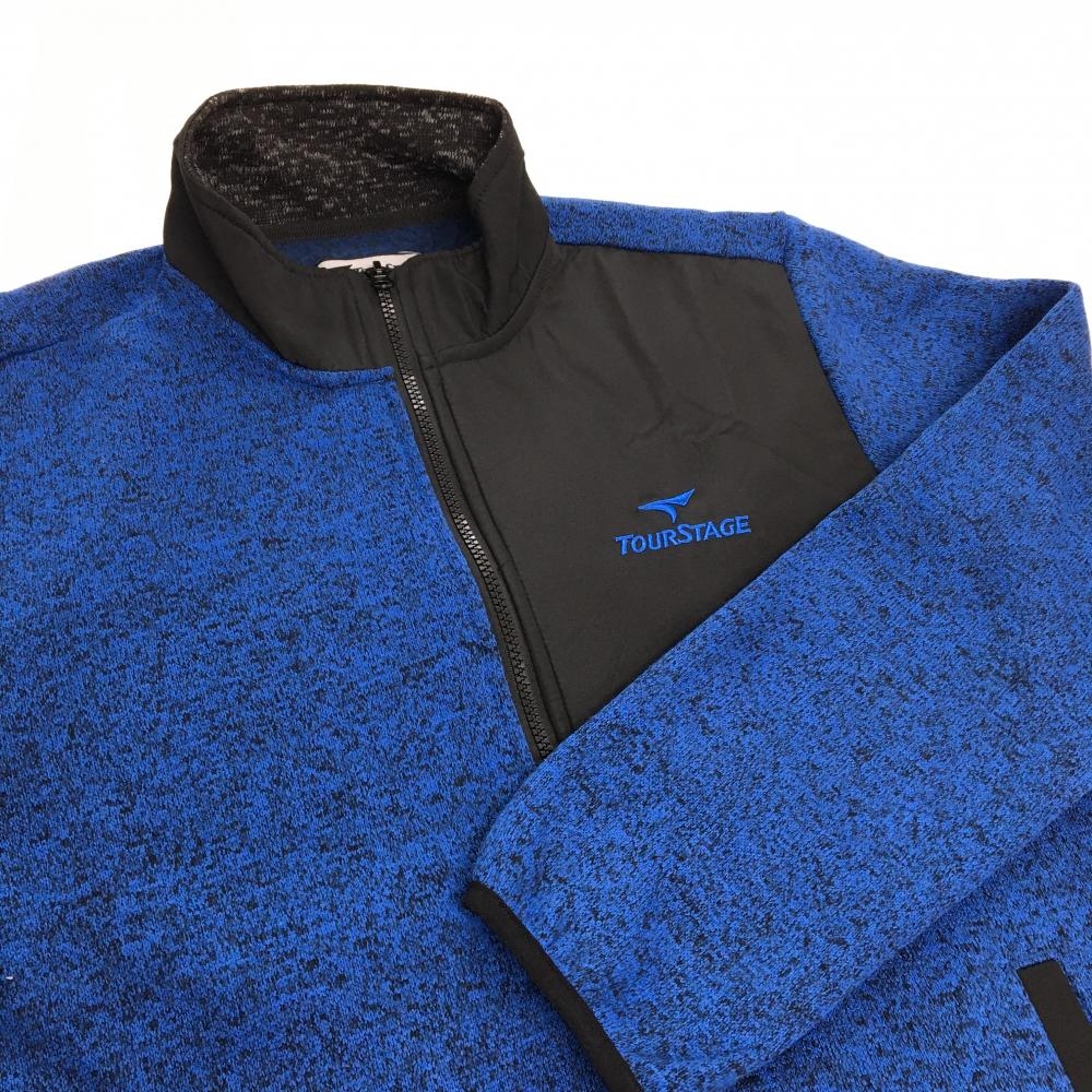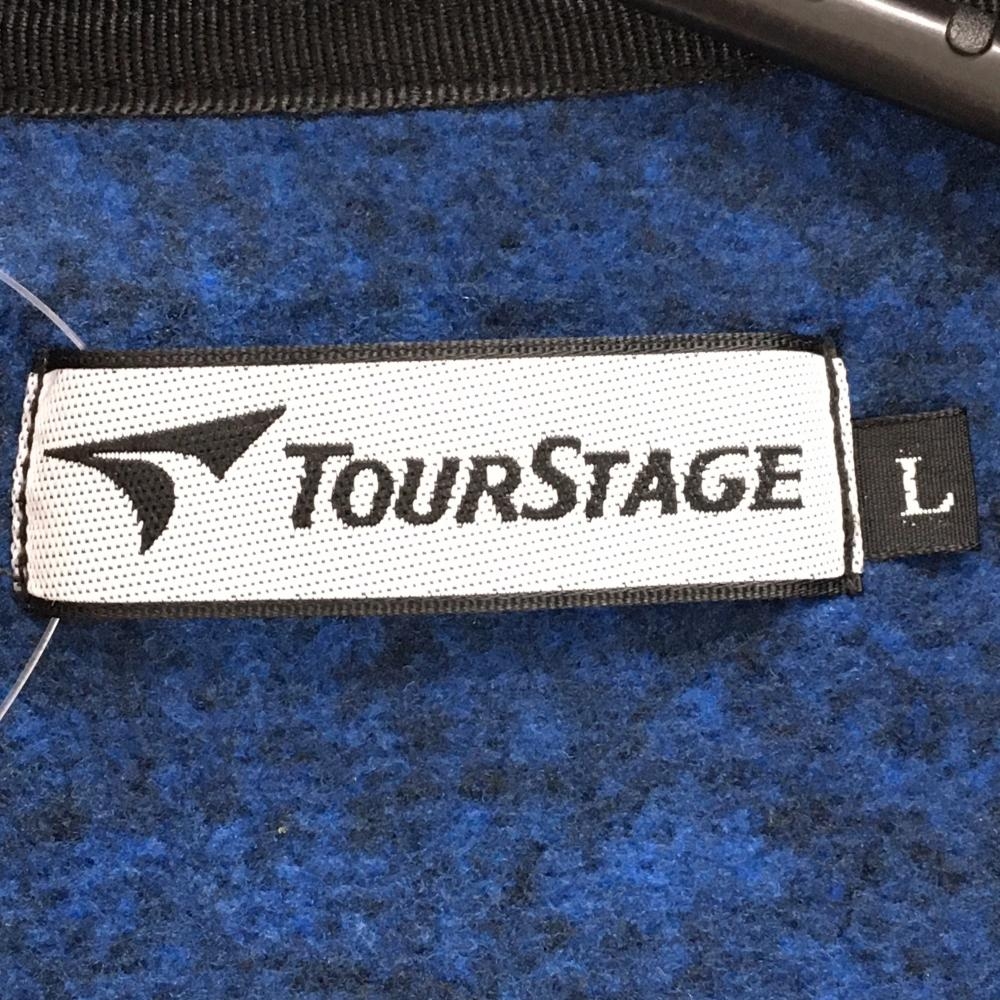 【超美品】ツアーステージ ニットジャケット 杢ブルー×黒 ロゴ刺しゅう メンズ L ゴルフウェア TOURSTAGE