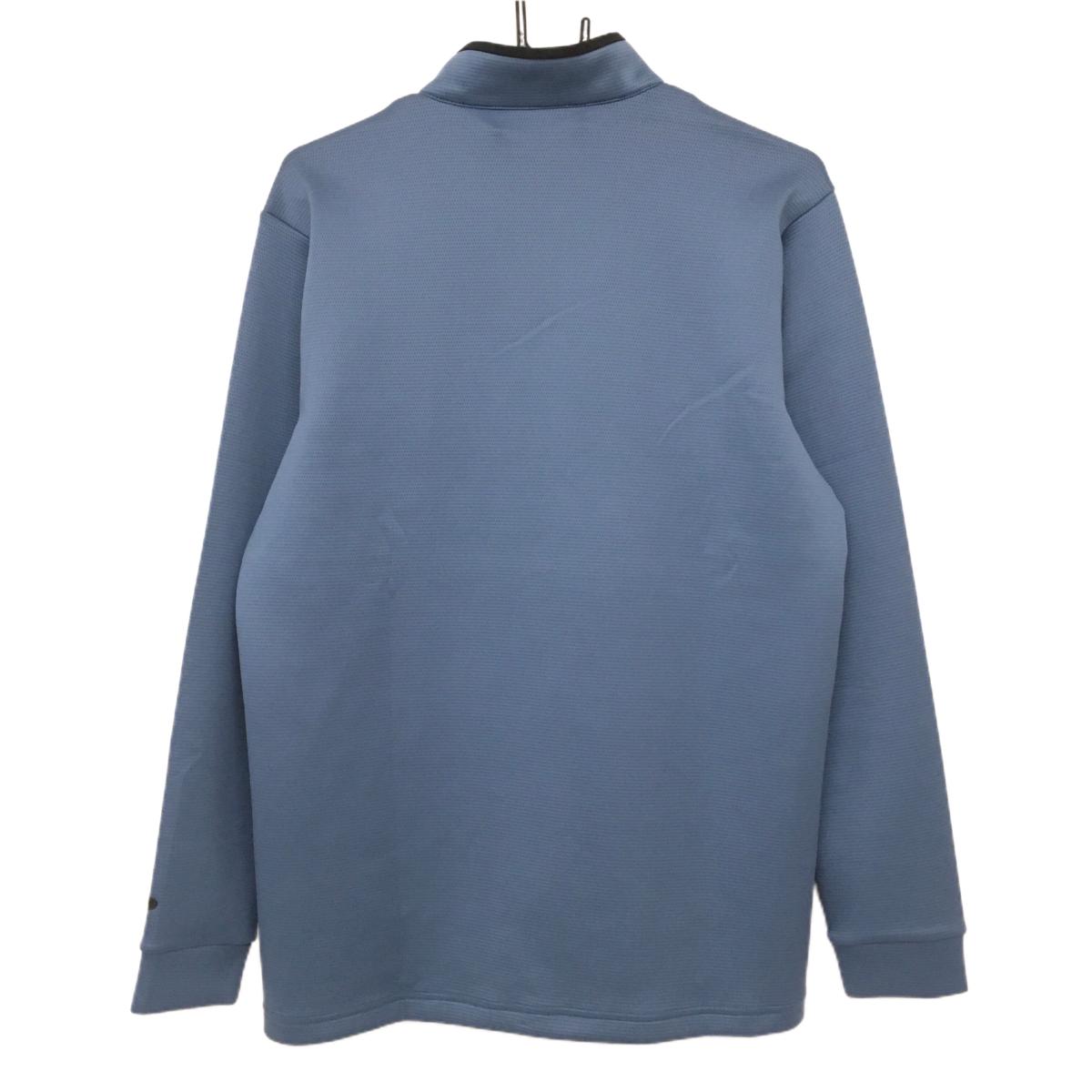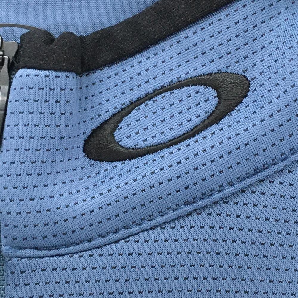 【超美品】オークリー 長袖ハイネックシャツ スモーキーブルー×黒 ハーフジップ ロゴ メンズ M ゴルフウェア 2024年モデル Oakley