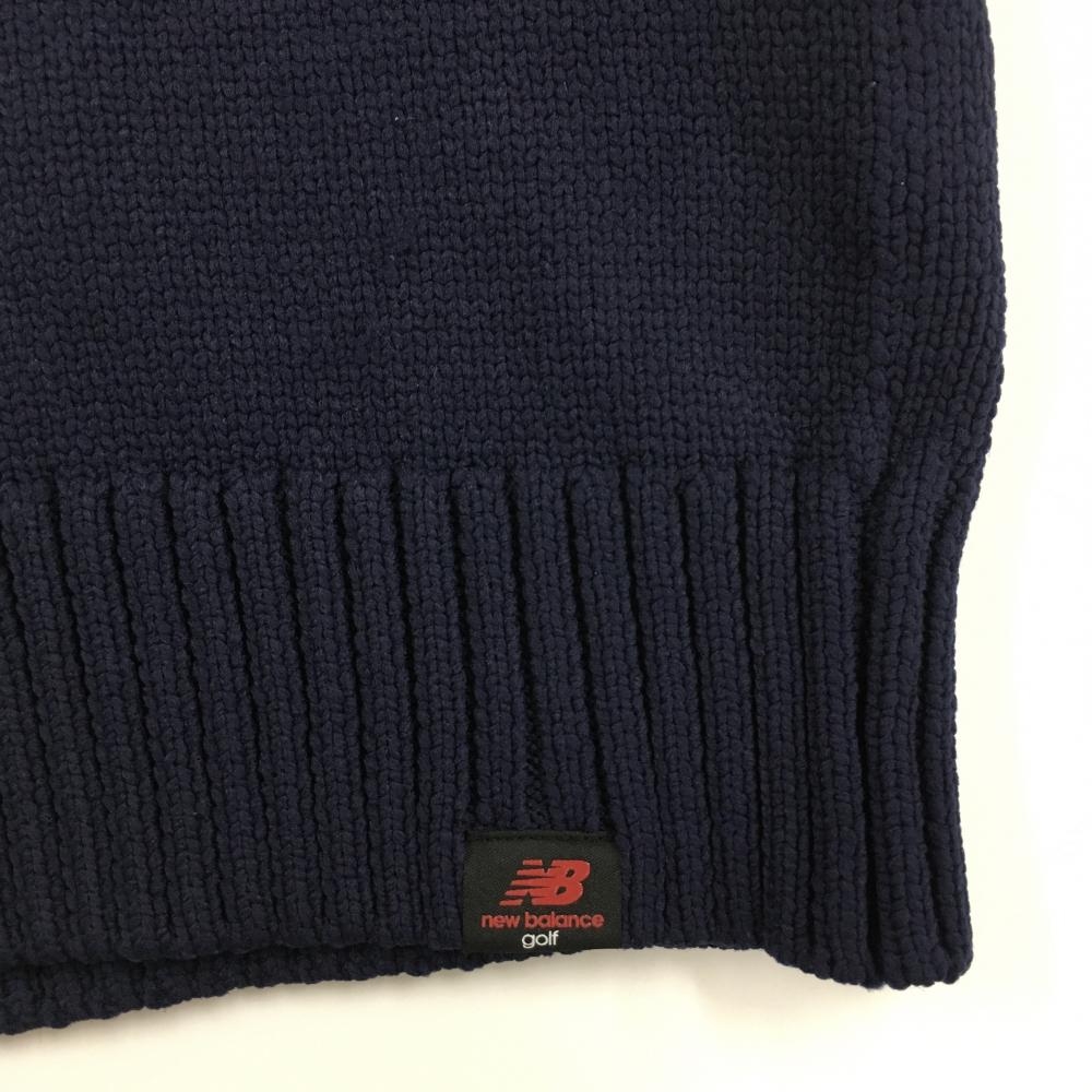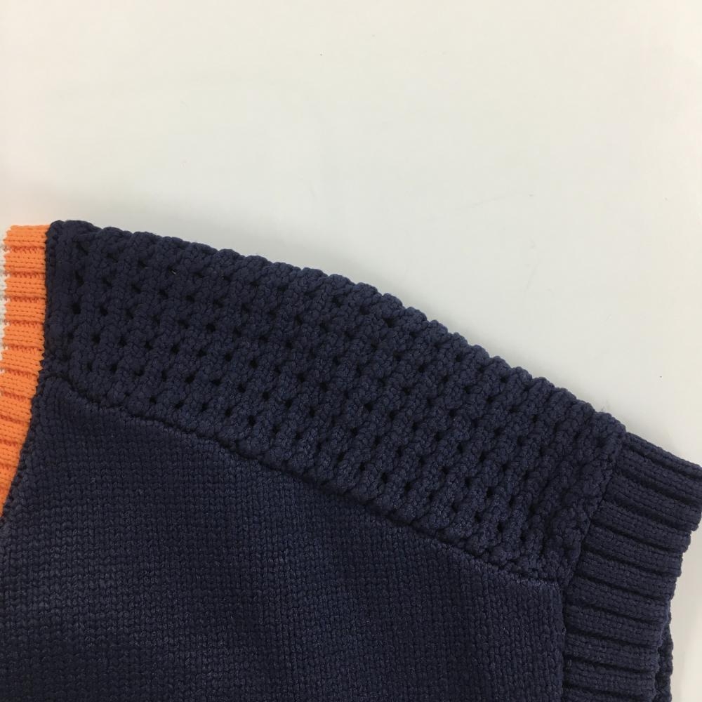 【美品】ニューバランスゴルフ ニットベスト ネイビー×オレンジ Vネック 肩透かし編み レディース 2(L) ゴルフウェア New Balance