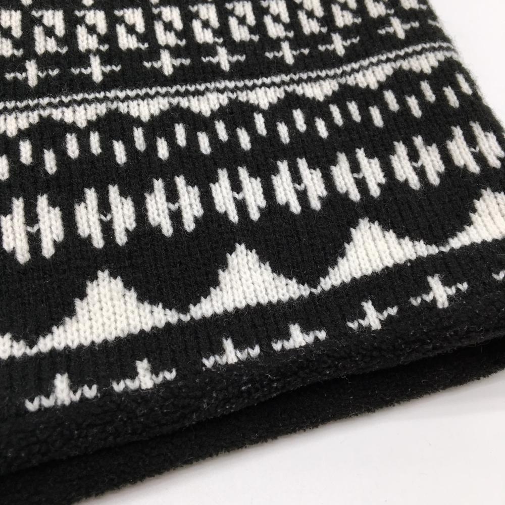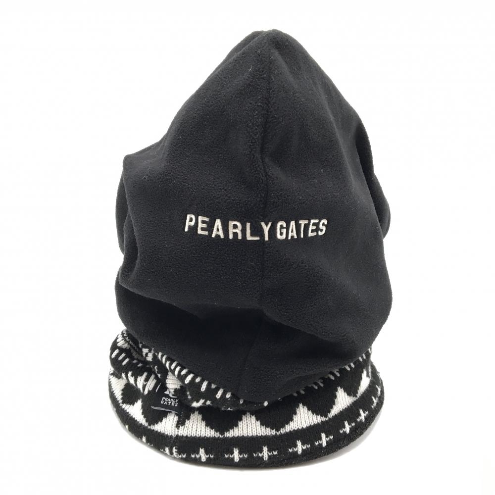 【美品】パーリーゲイツ フード付ネックウォーマー 黒×白 総柄 ニット 裏・フードフリース FR ゴルフウェア PEARLY GATES