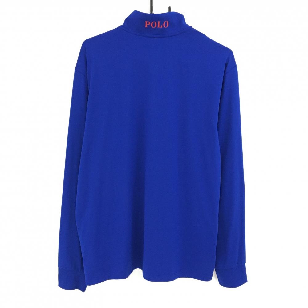 【超美品】ポロゴルフ 長袖ハイネックシャツ ブルー×オレンジ ハーフジップ 胸ロゴ メンズ LG ゴルフウェア Ralph Lauren