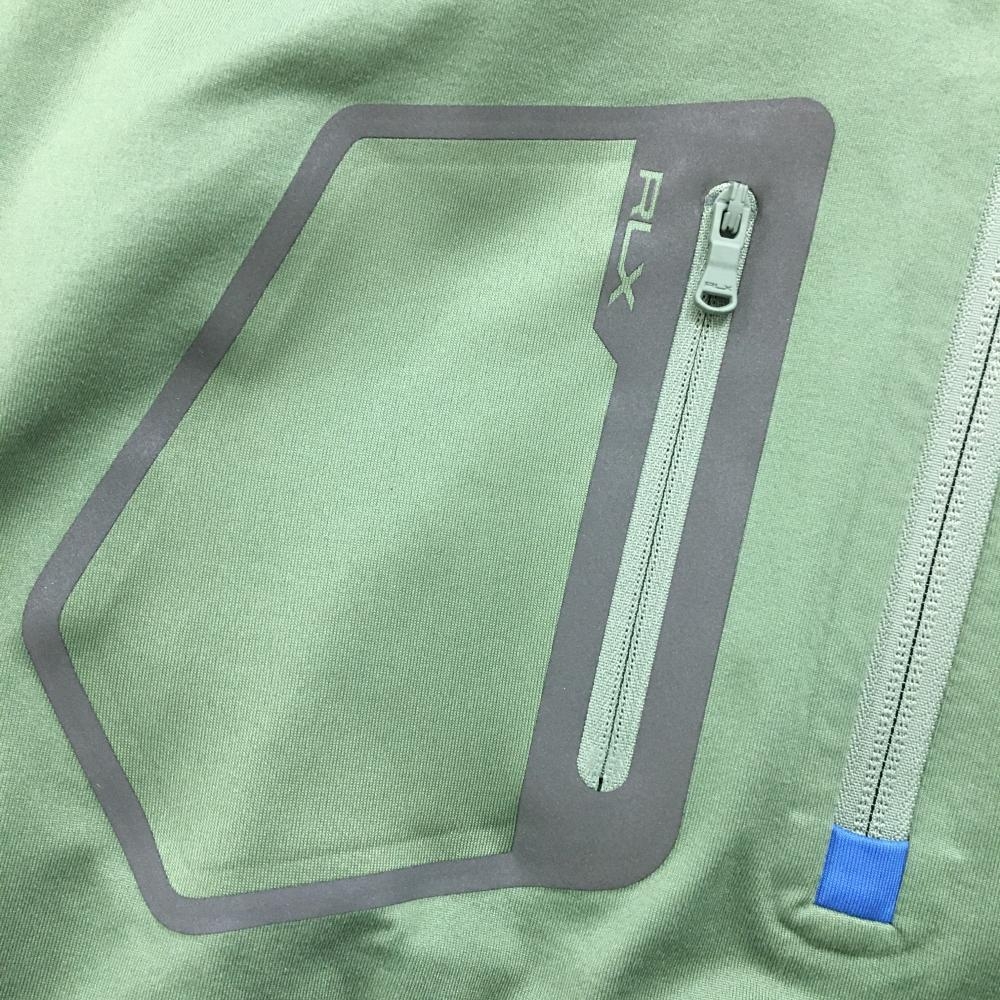 【美品】RLXラルフローレン 長袖ハイネックシャツ ネイビー×スモーキーグリーン系 ハーフジップ メンズ LG ゴルフウェア Ralph Lauren