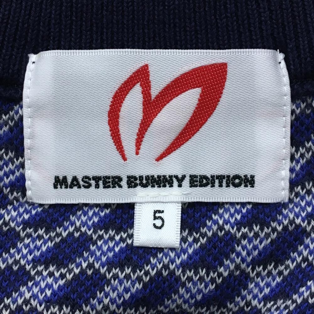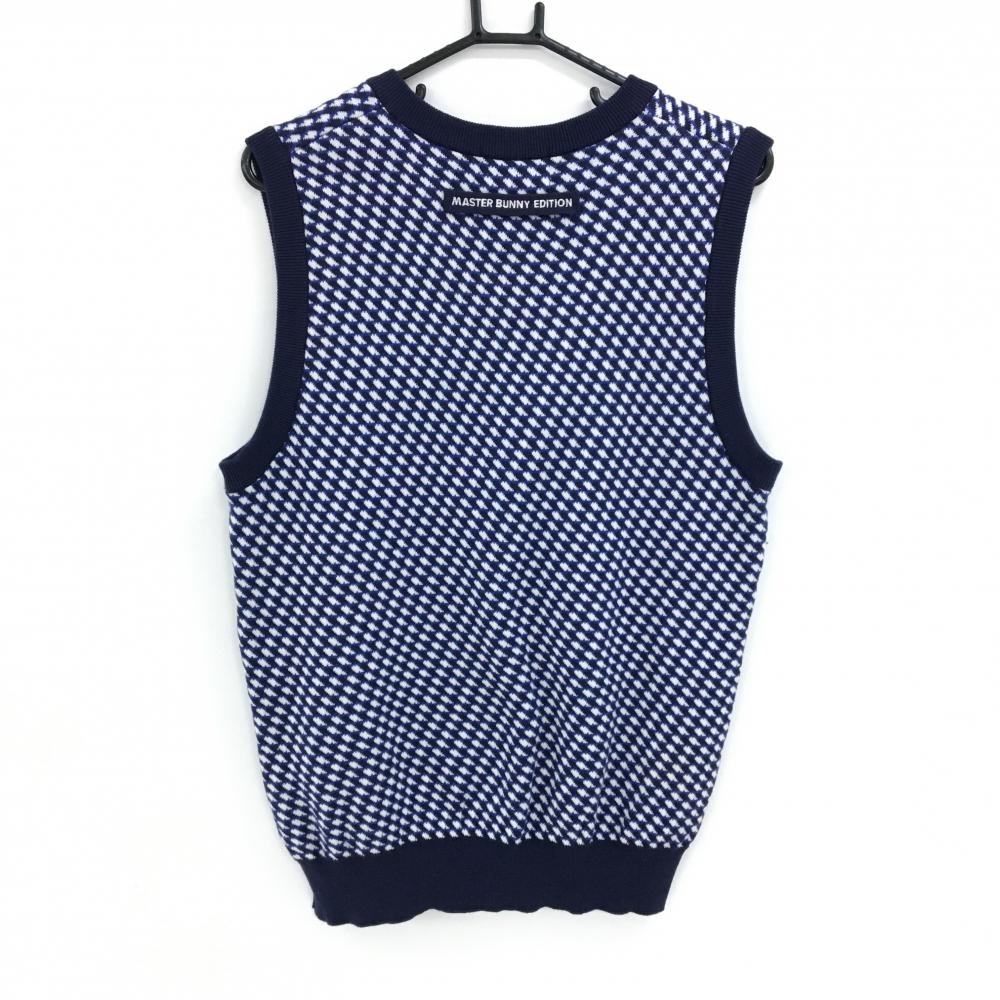 【美品】マスターバニー ニットベスト ネイビー×白 総柄 胸ロゴ コットン100% メンズ 5(L) ゴルフウェア MASTER BUNNY EDITION