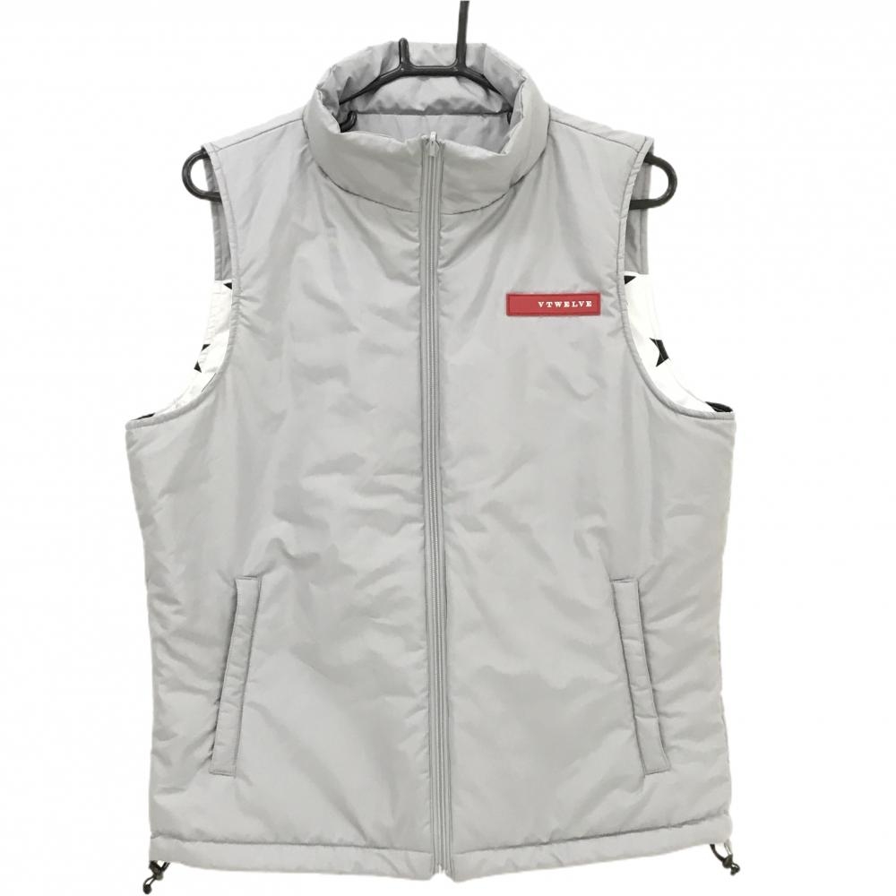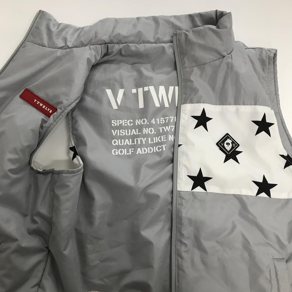 【美品】V12 中綿リバーシブルベスト グレー×白 一部星柄 片面バックロゴ メンズ M( ) ゴルフウェア V12
