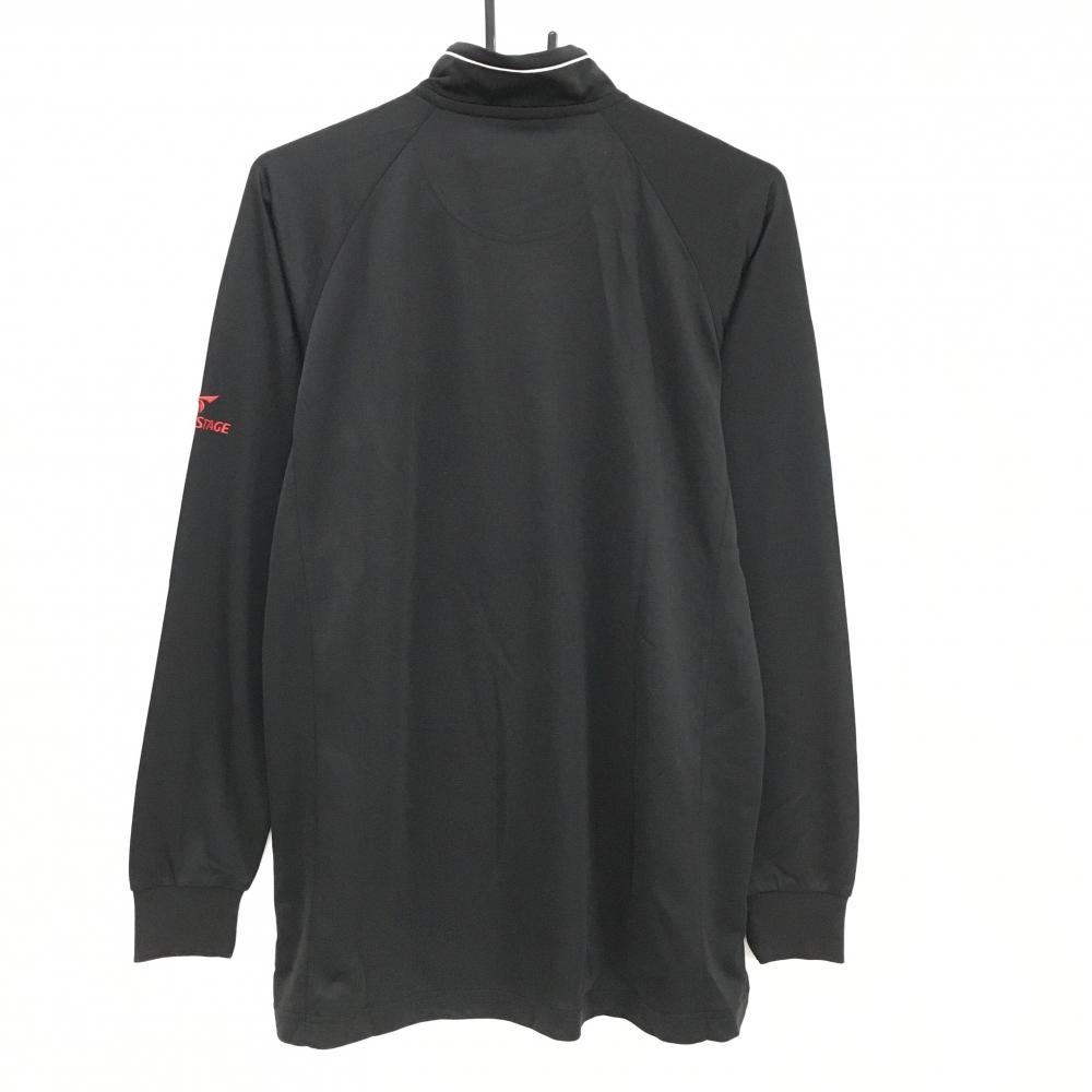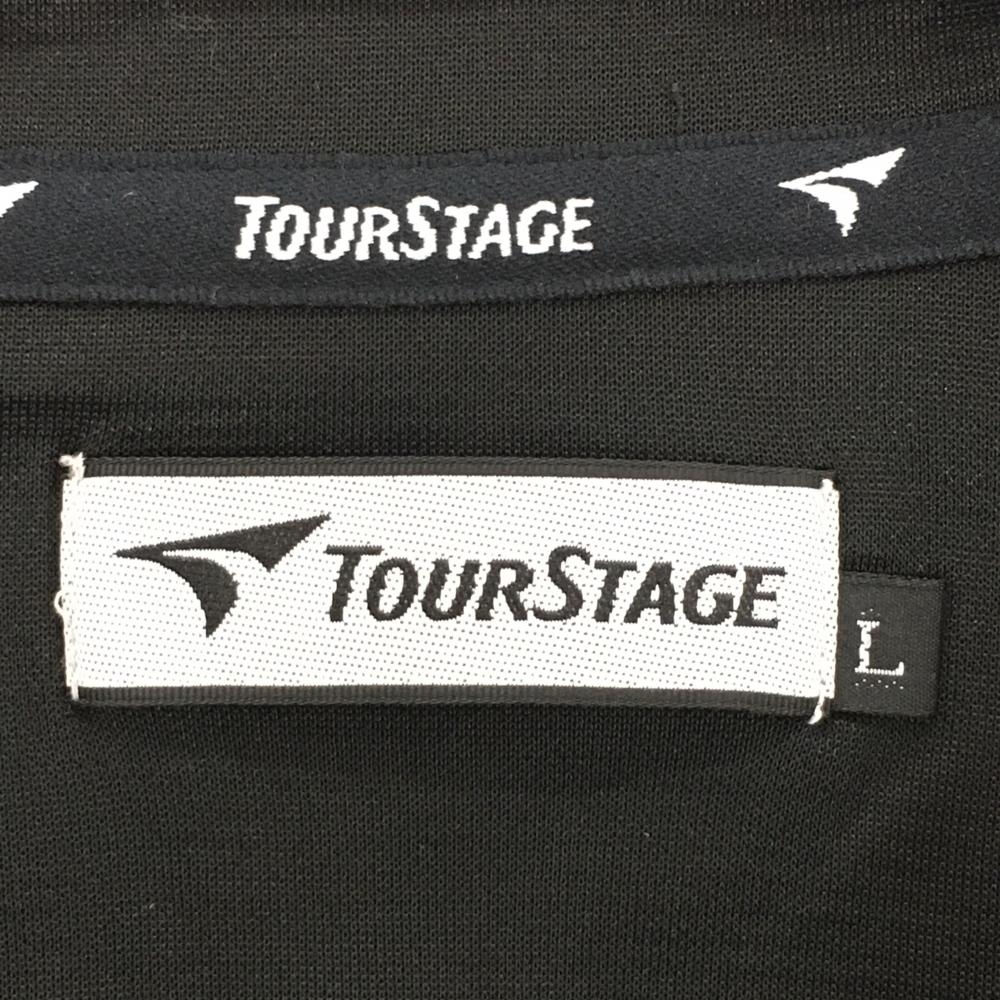 【超美品】ツアーステージ 長袖ハイネックシャツ 黒×白 サイド2ライン ハーフジップ ロゴ刺しゅう メンズ L ゴルフウェア TOURSTAGE