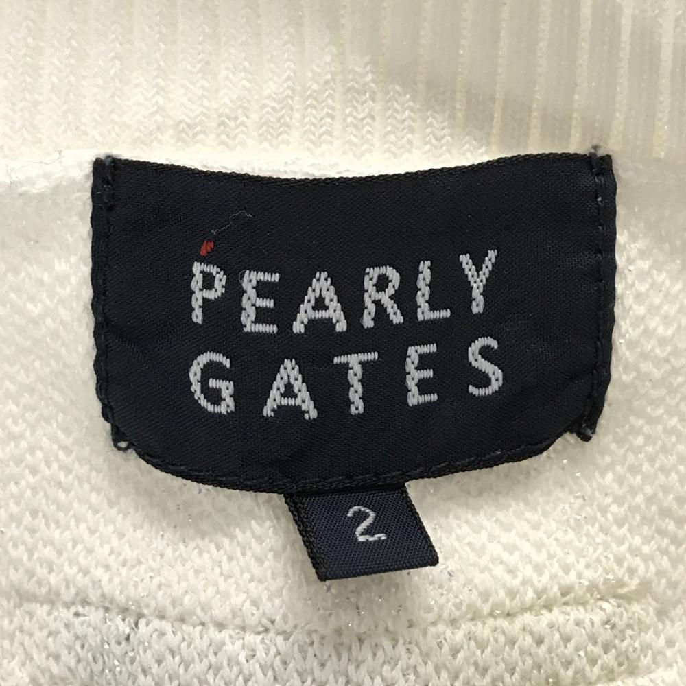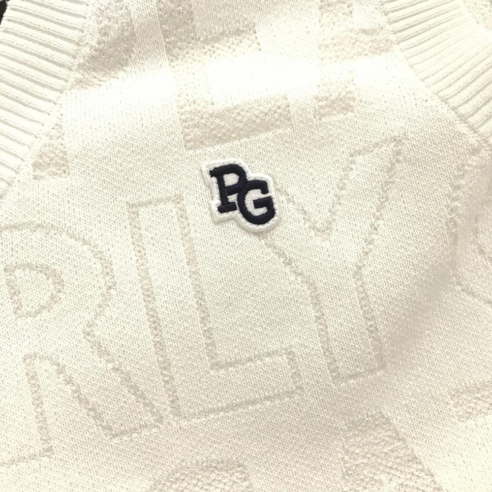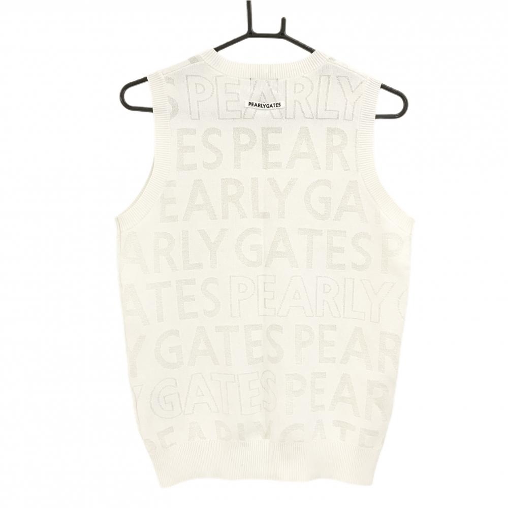【超美品】パーリーゲイツ ニットベスト 白系 英字ロゴ総柄 胸ロゴ Vネック レディース 2(L) ゴルフウェア 2024年モデル PEARLY GATES
