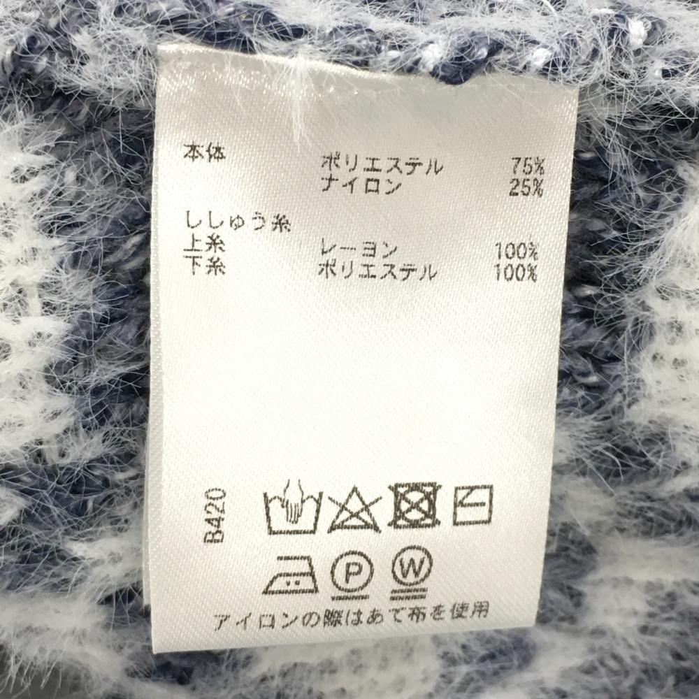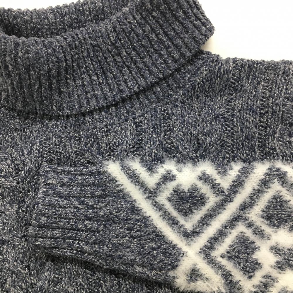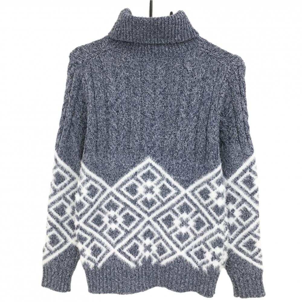 【超美品】ロサーセン タートルネックセーター×白 下部柄 ケーブル編み 白地モヘア風 レディース M ゴルフウェア Rosasen