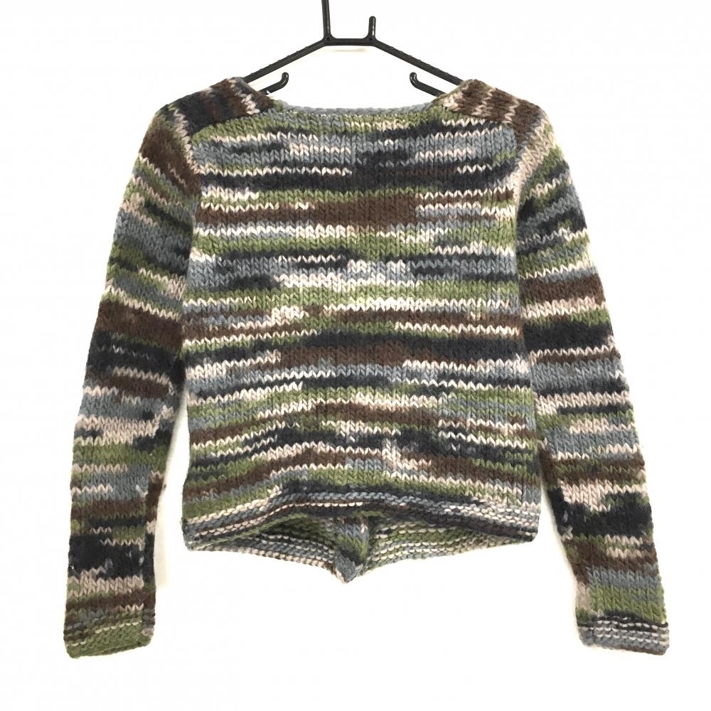 【美品】パーリーゲイツ ニットカーディガン ダークグリーン×ブラウン×黒 レディース 2(L) ゴルフウェア PEARLY GATES