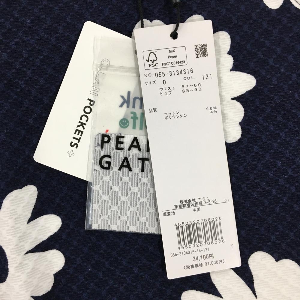 【新品】パーリーゲイツ スカート ネイビー×白 花柄 地模様 ロゴ刺しゅう レディース 0(S) ゴルフウェア PEARLY GATES