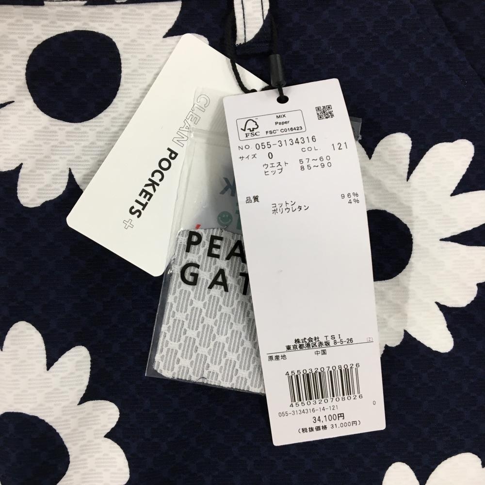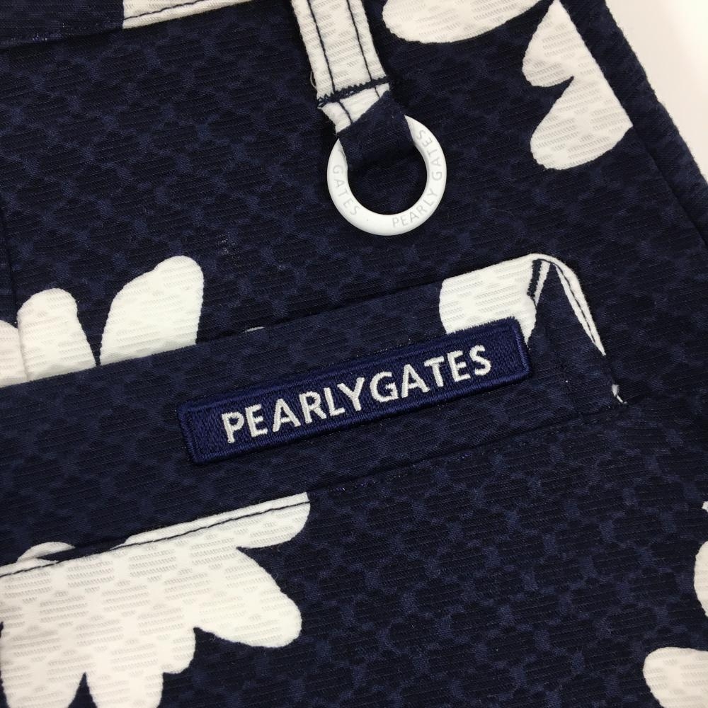 【新品】パーリーゲイツ スカート ネイビー×白 花柄 地模様 ロゴ刺しゅう レディース 0(S) ゴルフウェア PEARLY GATES