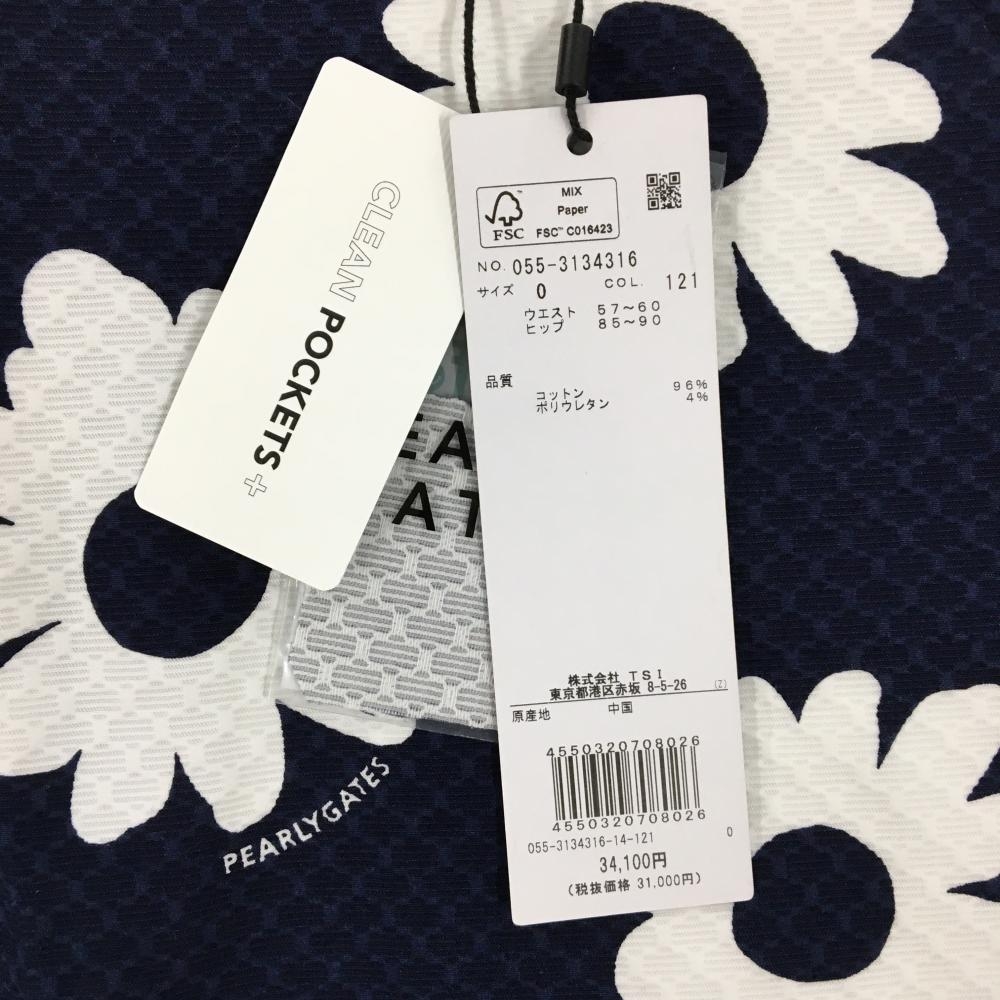 【新品】パーリーゲイツ スカート ネイビー×白 花柄 地模様 ロゴ刺しゅう レディース 0(S) ゴルフウェア PEARLY GATES