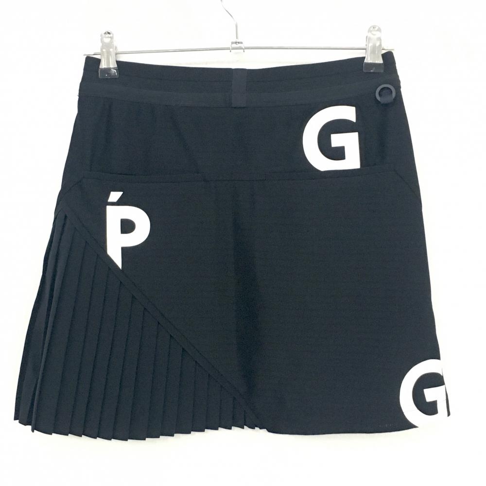 【新品】PGGパーリーゲイツ スカート 黒 一部プリーツ ウエストゴム 調節紐 ロゴプリント レディース 0(S) ゴルフウェア PEARLY GATES