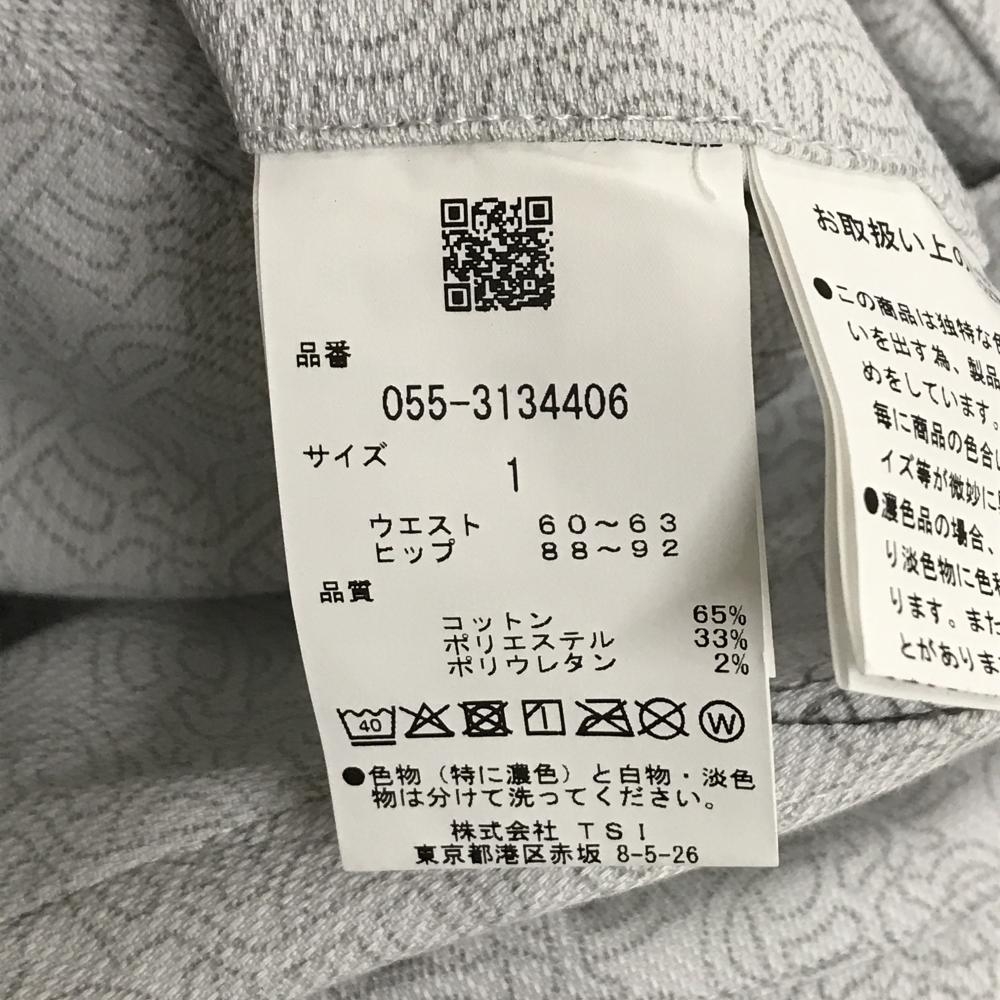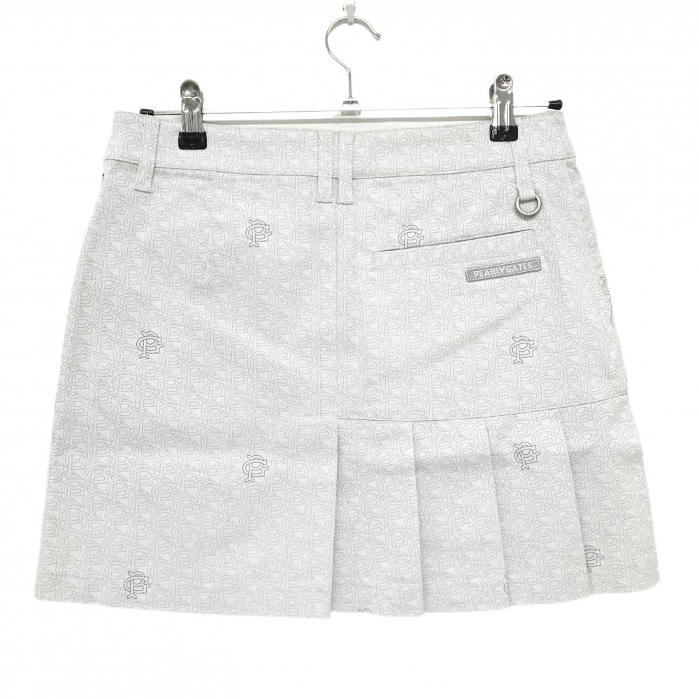 【新品】パーリーゲイツ スカート ライトグレー×グレー 総柄 一部プリーツ ロゴ刺しゅう レディース 1(M) ゴルフウェア PEARLY GATES