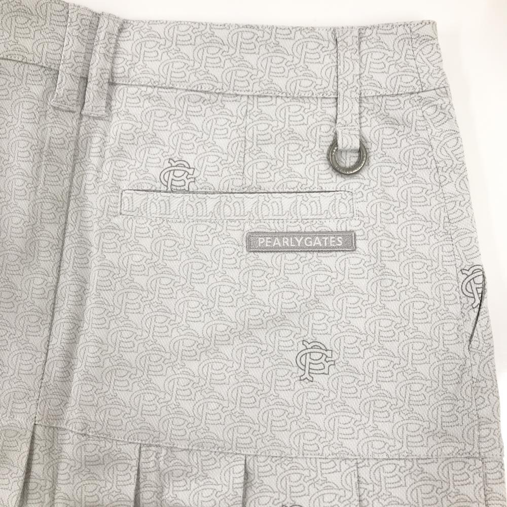 【新品】パーリーゲイツ スカート ライトグレー×グレー 総柄 一部プリーツ ロゴ刺しゅう レディース 1(M) ゴルフウェア PEARLY GATES