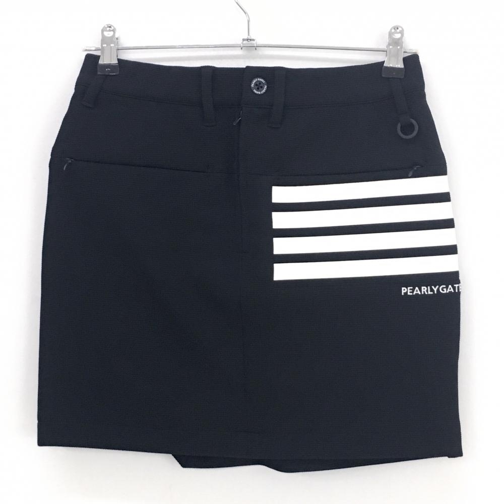 【新品】パーリーゲイツ スカート 黒×白 ロゴ刺しゅう 4ライン バックファスナー レディース 0(S) ゴルフウェア PEARLY GATES