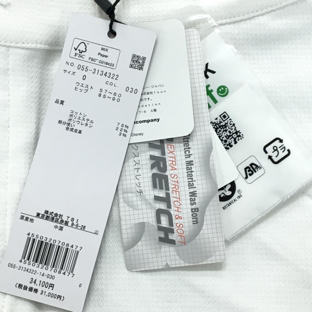 【新品】パーリーゲイツ×Disney スカート 白 ロゴネイビー ミッキーワッペン ストレッチ レディース 0(S) ゴルフウェア PEARLY GATES