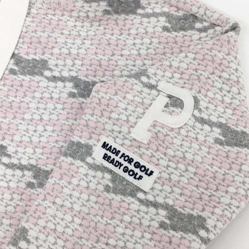 【新品】パーリーゲイツ ジップパーカー ピンク×グレー 総柄 ボーダー風 凸凹生地 袖ワッペン レディース 0(S) ゴルフウェア PEARLY GATES