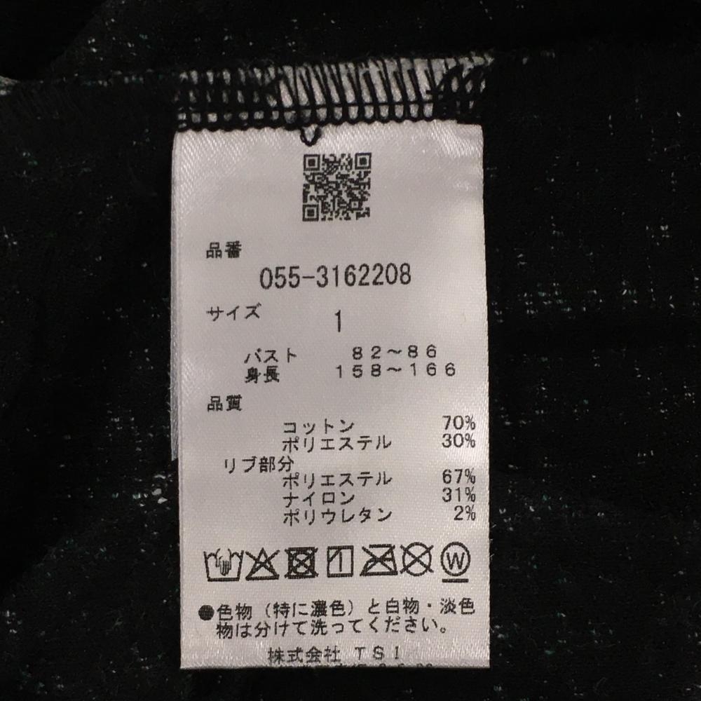 【新品】パーリーゲイツ ジップパーカー 黒×白×グリーン 総柄 凸凹生地 袖ワッペン レディース 1(M) ゴルフウェア PEARLY GATES