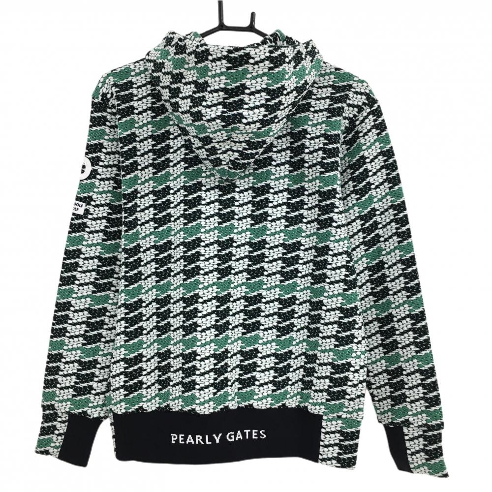 【新品】パーリーゲイツ ジップパーカー 黒×白×グリーン 総柄 凸凹生地 袖ワッペン レディース 1(M) ゴルフウェア PEARLY GATES