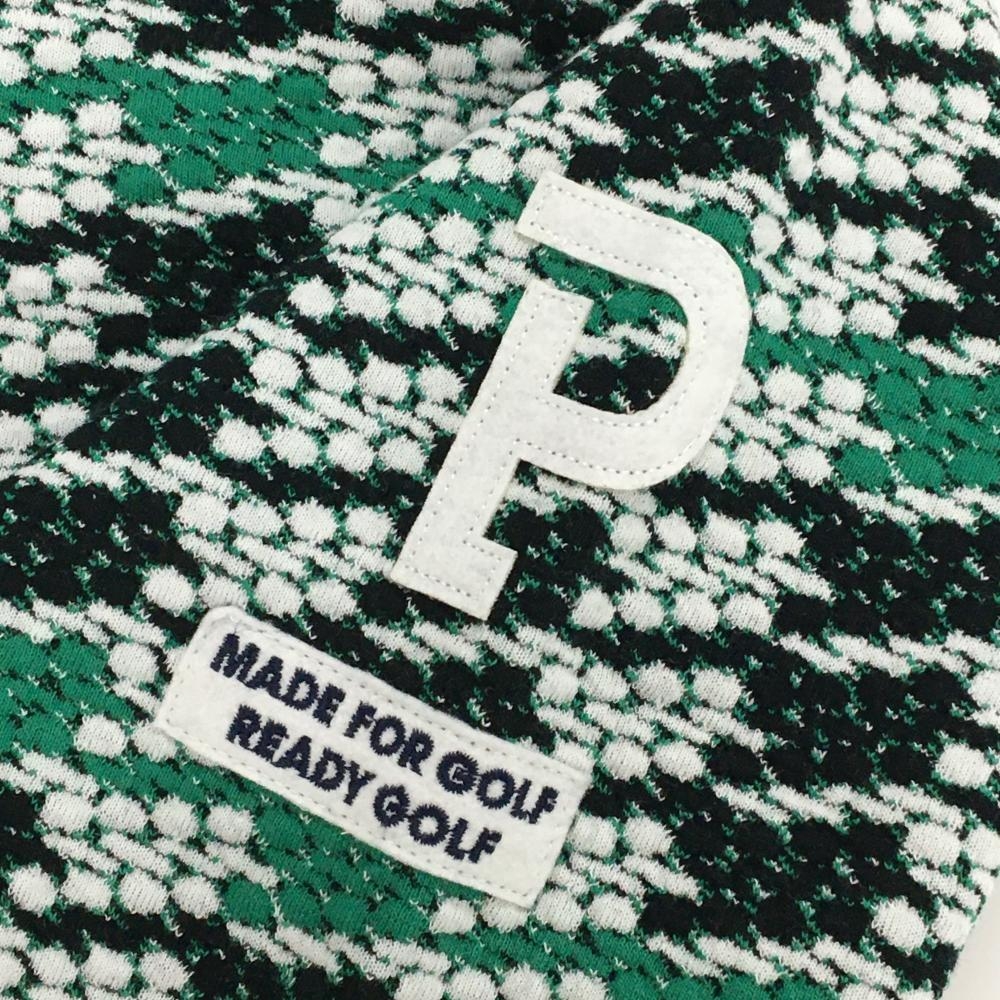 【新品】パーリーゲイツ ジップパーカー 黒×白×グリーン 総柄 凸凹生地 袖ワッペン レディース 0(S) ゴルフウェア PEARLY GATES