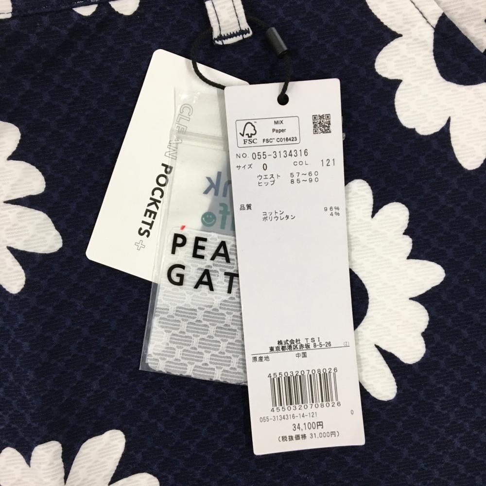 【新品】パーリーゲイツ スカート ネイビー×白 花柄 織生地 ロゴ刺しゅう レディース 0(S) ゴルフウェア PEARLY GATES