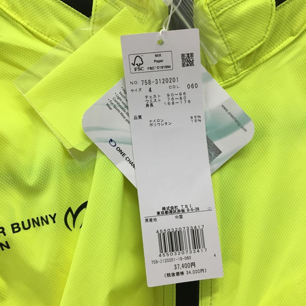 【新品】マスターバニー ジャケット 蛍光イエロー×黒 ロゴプリント フード収納可 メンズ 4(M) ゴルフウェア MASTER BUNNY EDITION