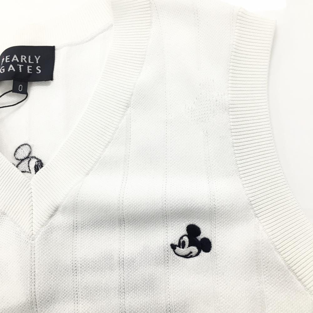 【新品】パーリーゲイツ×Disney ニットベスト 白×ネイビー ミッキー刺しゅう レディース S ゴルフウェア PEARLY GATES