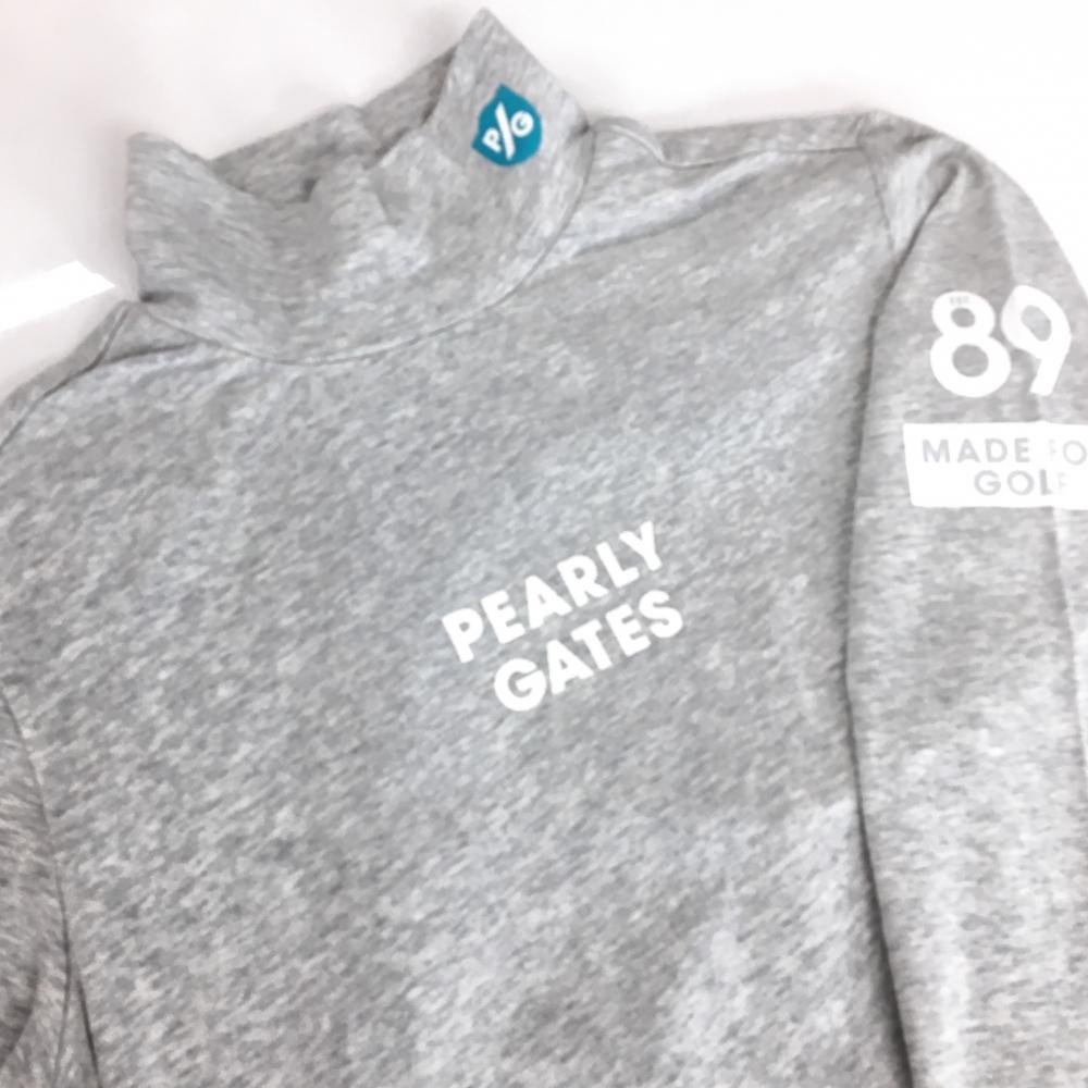 【新品】パーリーゲイツ 長袖ハイネックシャツ 杢グレー×白 ロゴプリント レディース 0(S) ゴルフウェア PEARLY GATES