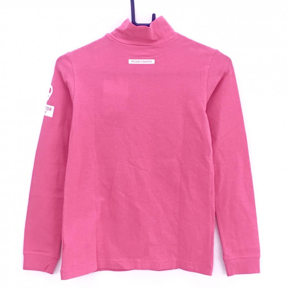【新品】パーリーゲイツ 長袖ハイネックシャツ ピンク×白 ロゴプリント レディース 00(XS) ゴルフウェア PEARLY GATES