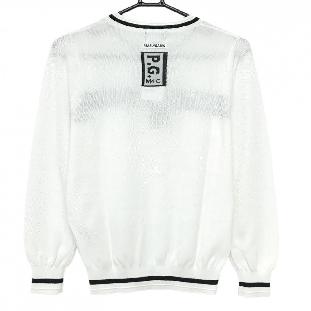 【新品】パーリーゲイツ セーター 白×黒 フロントロゴ 薄手 ニット レディース 0(S) ゴルフウェア PEARLY GATES