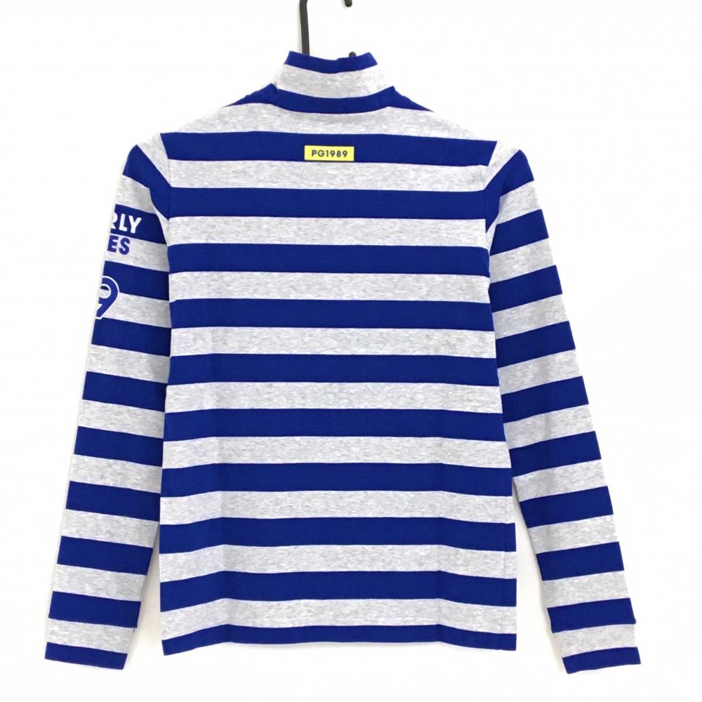 【新品】パーリーゲイツ 長袖ハイネックシャツ ブルー×杢ネイビー ボーダー ロゴプリント レディース 00(XS) ゴルフウェア PEARLY GATES
