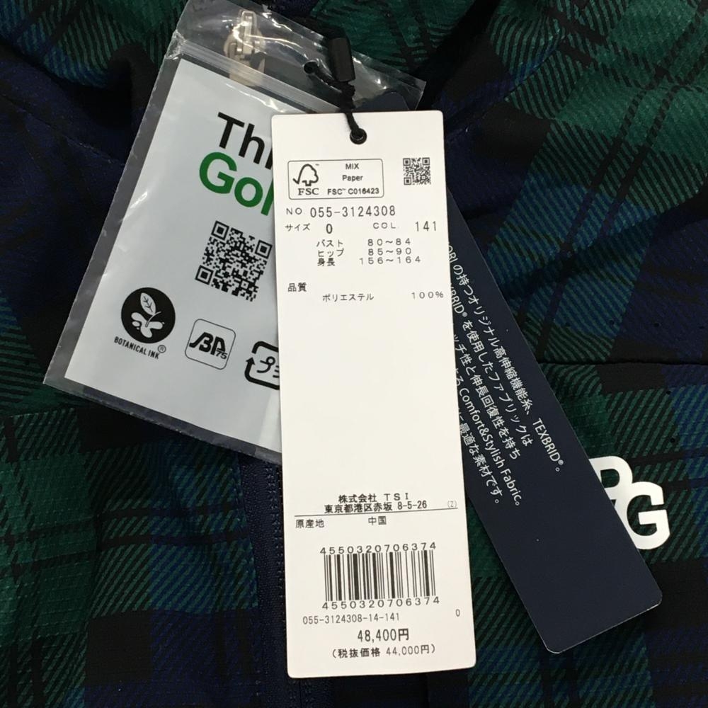 【新品】パーリーゲイツ フード付き長袖ワンピース グリーン×ネイビー チェック柄 レディース 0(S) ゴルフウェア PEARLY GATES