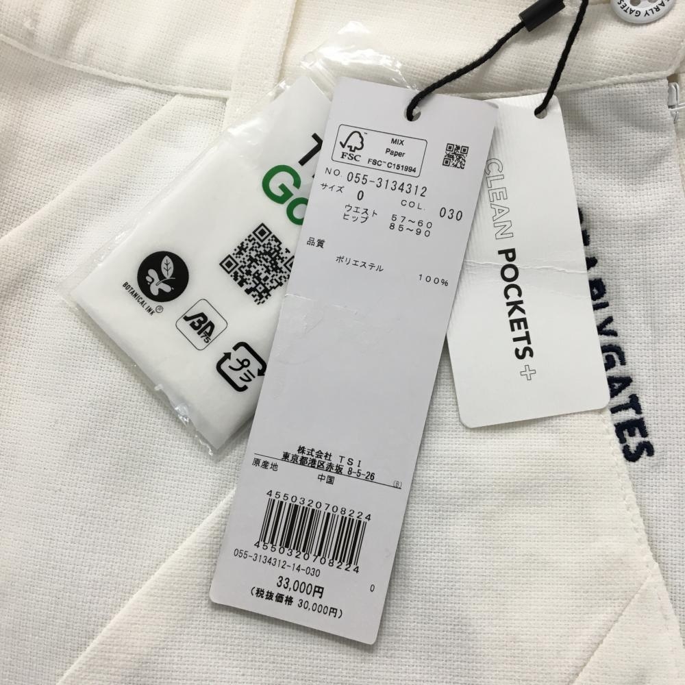 【新品】パーリーゲイツ スカート 白 斜めストライプ調 クリーンポケッツ ロゴ刺しゅう レディース 0(S) ゴルフウェア PEARLY GATES