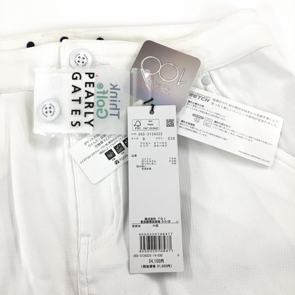 【新品】パーリーゲイツ×Disney スカート 白×ネイビー ミッキーワッペン ストレッチ レディース 0(S) ゴルフウェア PEARLY GATES