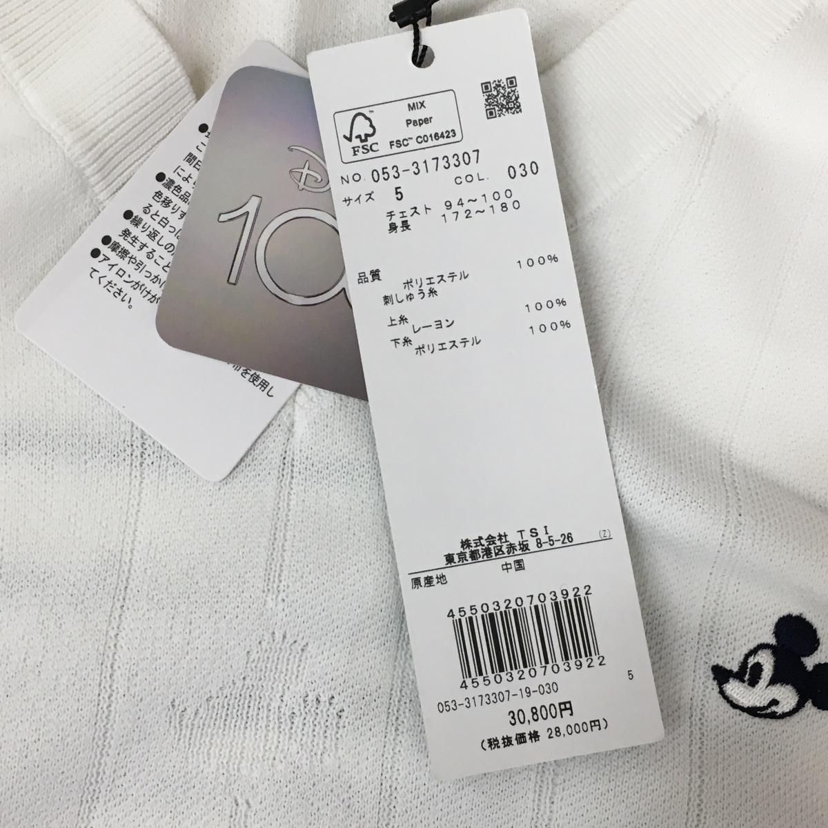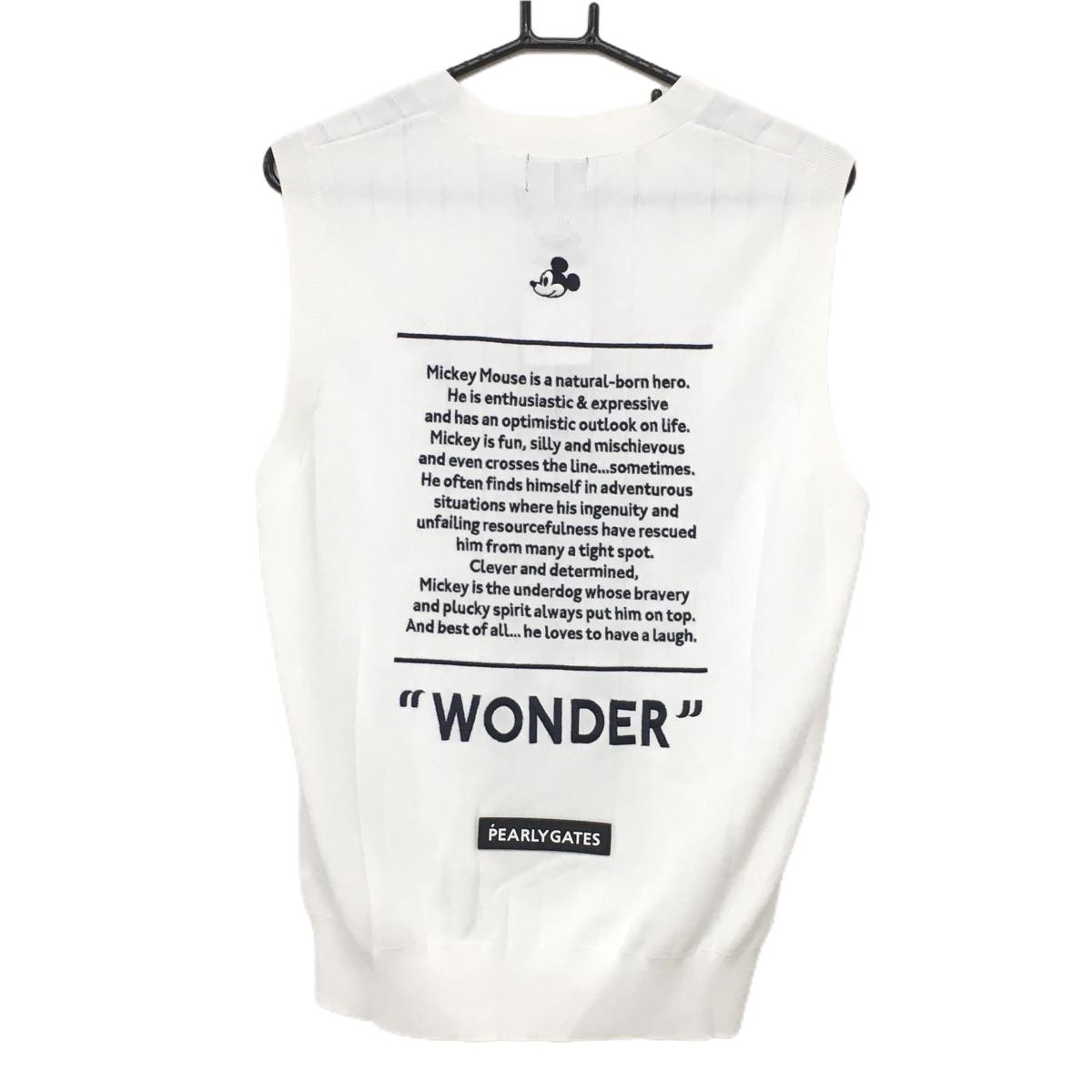 【新品】パーリーゲイツ×Disney ニットベスト 白×ネイビー ミッキー刺しゅう ストライプ調編み メンズ 5(L) ゴルフウェア PEARLY GATES