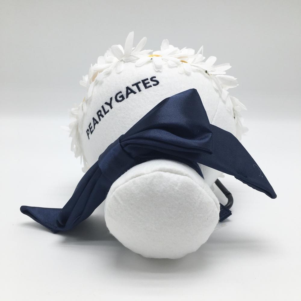 【新品】パーリーゲイツ ボールポーチ 白×ネイビー ブーケ型 リボン カラビナ付き ボールケース ゴルフ PEARLY GATES