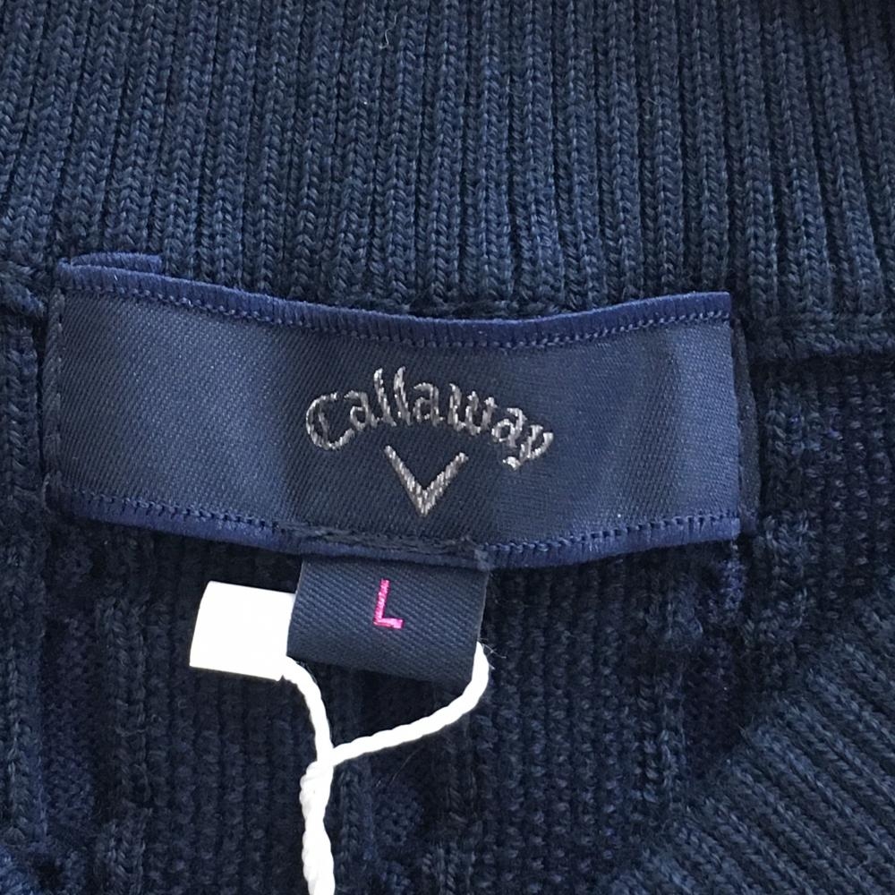 【新品】キャロウェイ セーター ネイビー×白 ケーブル編み Vネック ニット レディース L ゴルフウェア 2025年モデル Callaway