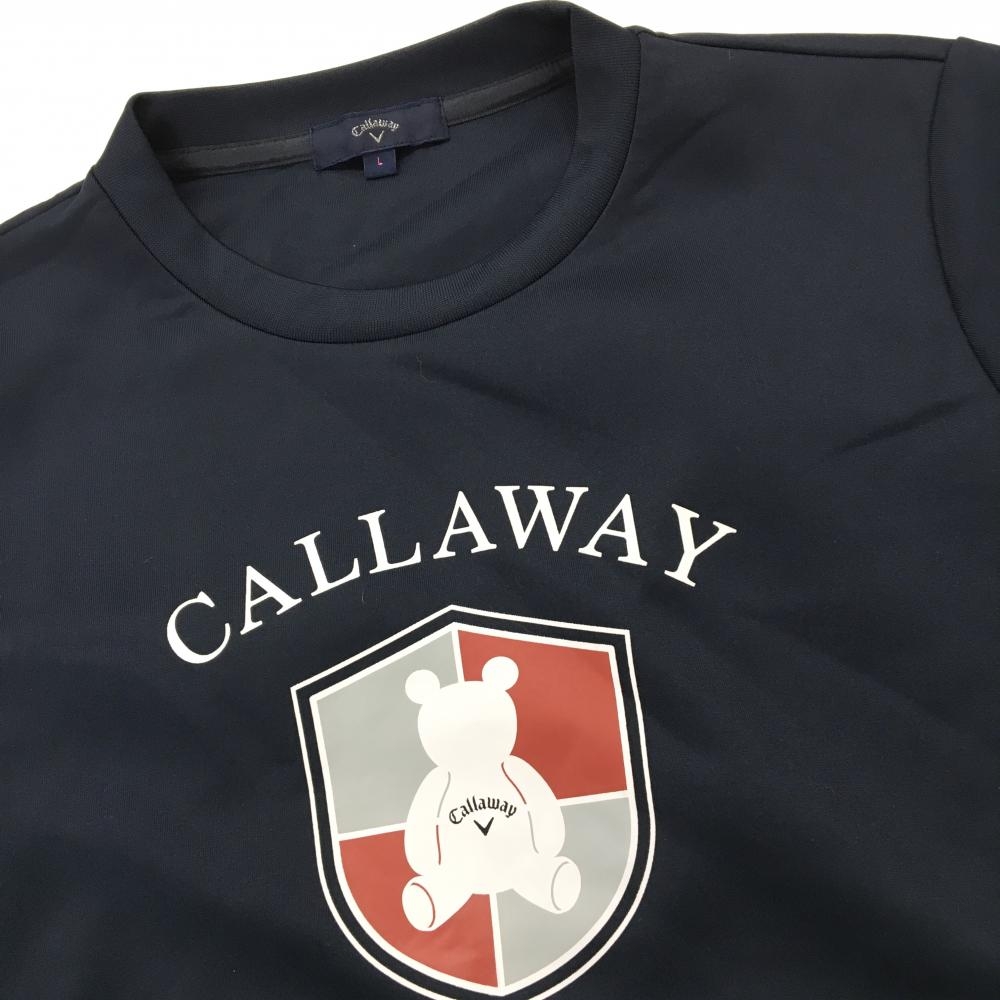 【超美品】キャロウェイ トレーナー ネイビー×白 フロントロゴ ベア レディース L ゴルフウェア Callaway