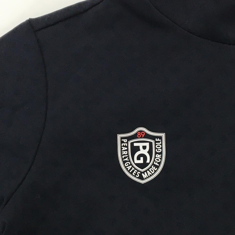 【超美品】パーリーゲイツ 長袖ハイネックシャツ ダークネイビー ロゴ白 織生地 レディース 2(L) ゴルフウェア PEARLY GATES