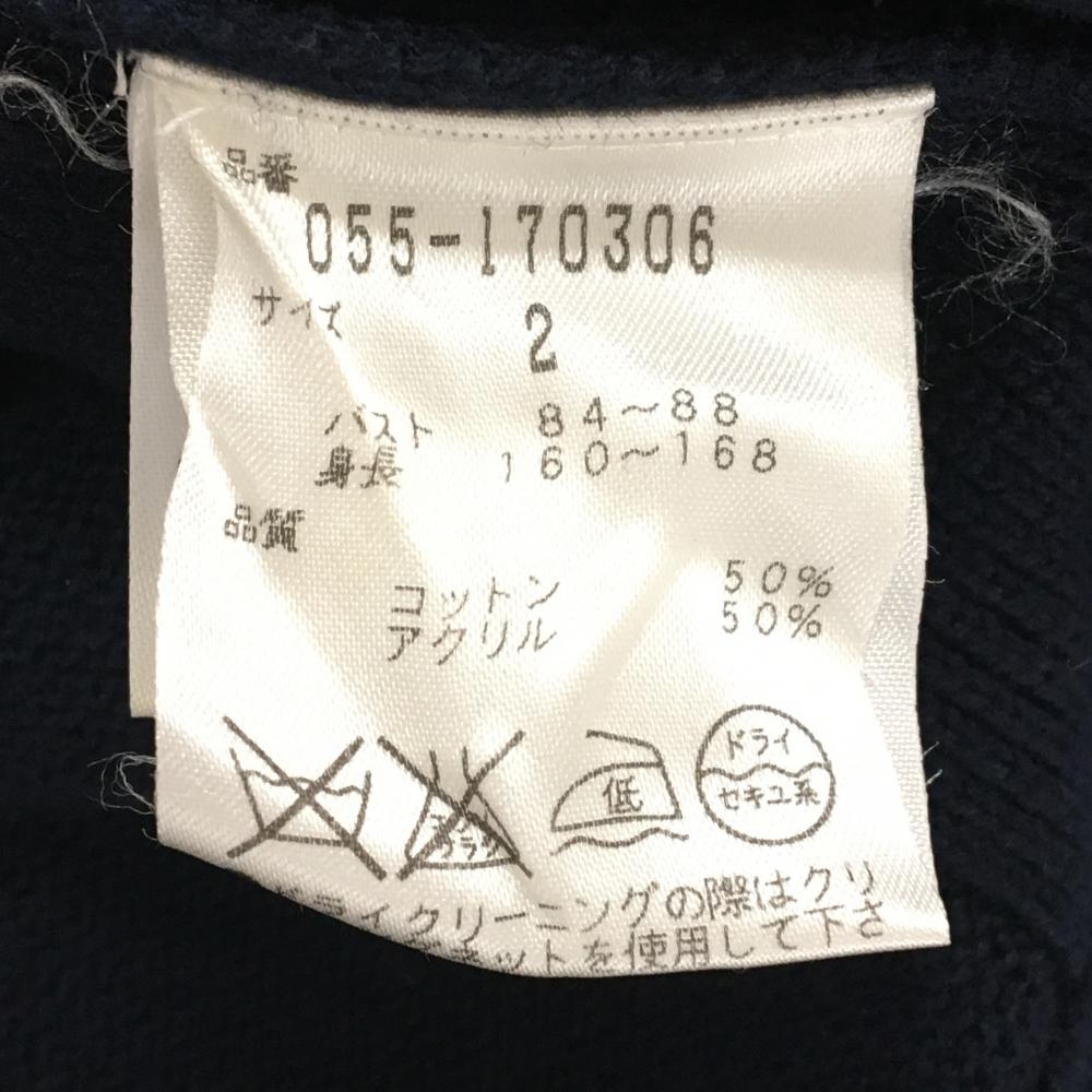 パーリーゲイツ セーター ネイビー コットン混 ハーフジップ バックロゴ ニット レディース 2(L) ゴルフウェア PEARLY GATES