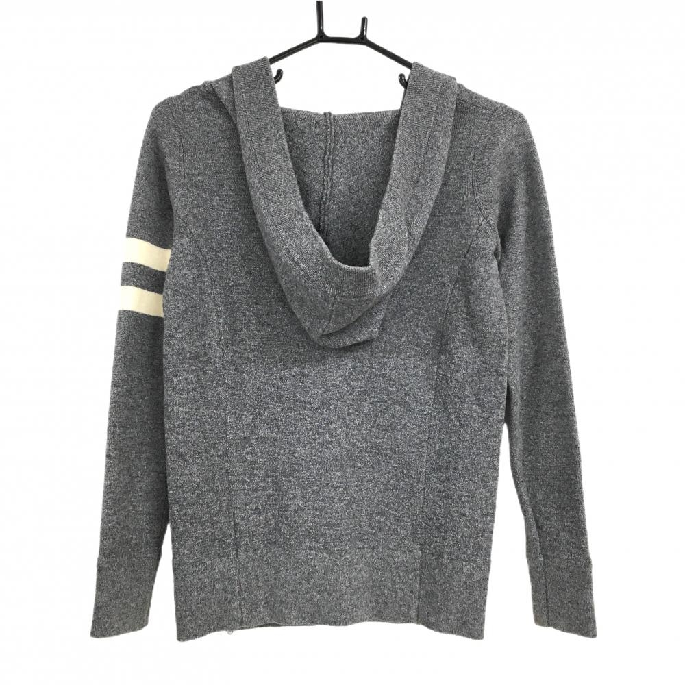 【美品】マークアンドロナ フード付ニットカーディガン グレー×アイボリー ウール混 レディース S ゴルフウェア MARK&LONA