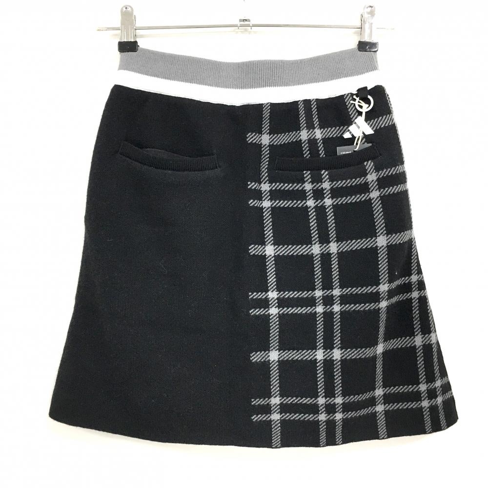 【未使用品】アディダス ニットスカート 黒×グレー 一部チェック柄 ウール混 紙タグ付 レディース XS ゴルフウェア 2024年モデル adidas