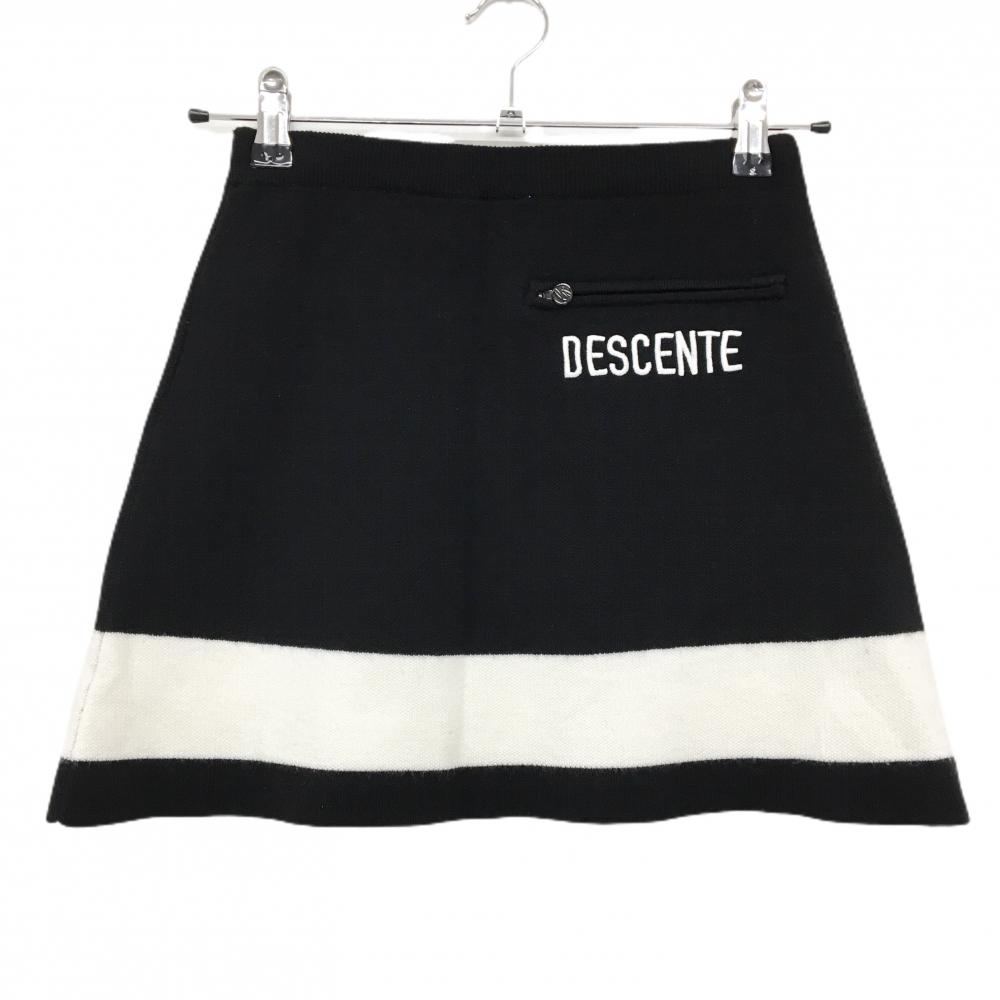 【超美品】デサントゴルフ ニットスカート 黒×白 ロゴ ウール混 中田英寿 レディース SS ゴルフウェア DESCENTE
