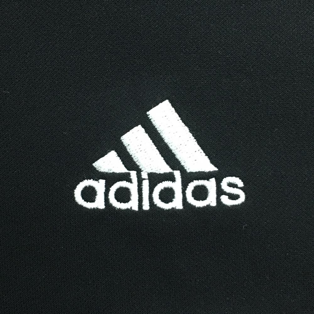 アディダス 長袖ハイネックシャツ 黒×白 袖3ライン ロゴ刺しゅう ハーフジップ メンズ S/P ゴルフウェア adidas