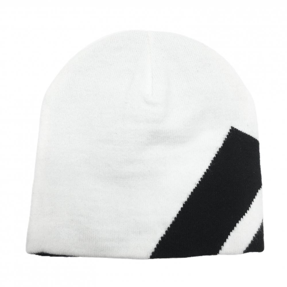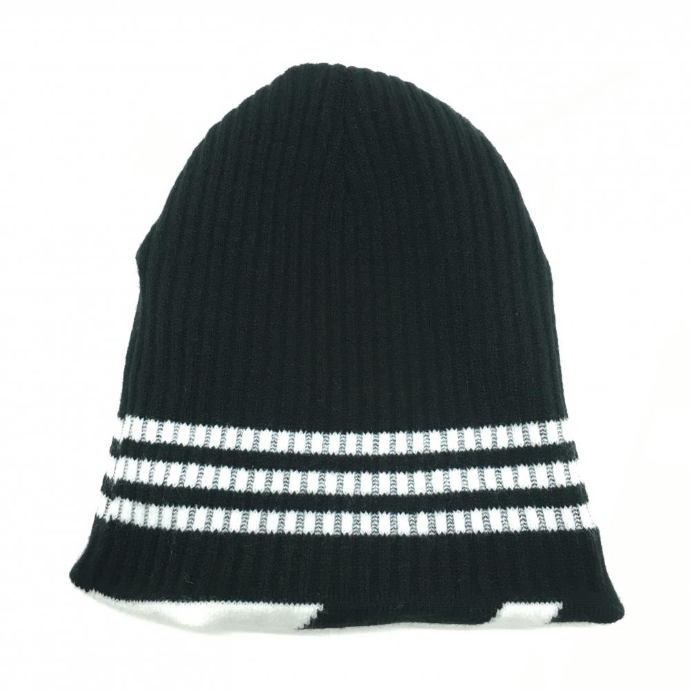 【超美品】アディダス リバーシブルニット帽 白×黒 ロゴ刺しゅう 裏3ライン ゴルフウェア adidas