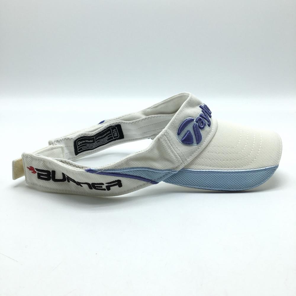 【美品】テーラーメイド サンバイザー 白×ライトブルー ロゴ刺しゅう フリー(57-59cm) ゴルフウェア TaylorMade