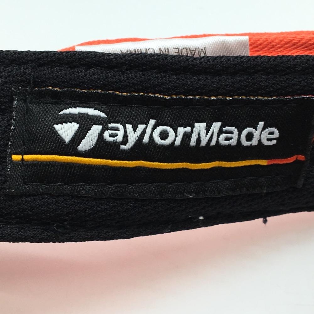 【美品】テーラーメイド サンバイザー オレンジ×白 ロゴ刺しゅう フリー(57-59cm) ゴルフウェア TaylorMade